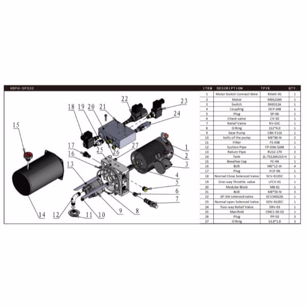 پاورپکهای هیدرولیکی بهعنوان پیشرانه اصلی، قدرت حرکت تیغههای برفروب را تأمین میکنند.